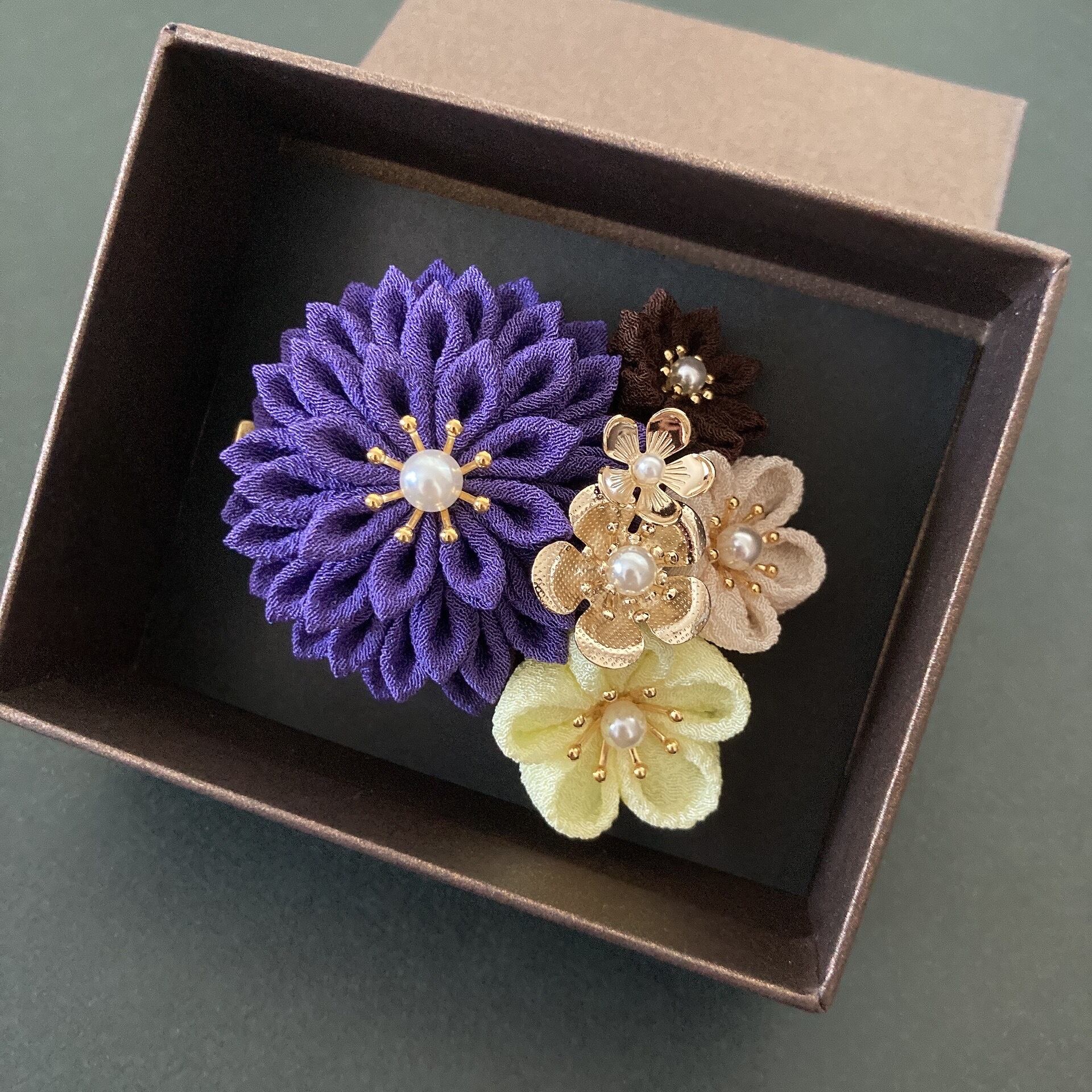 【ダリアと小花の髪飾り】 和装 フォーマル 特別な日 着物 浴衣 袴 振袖 卒業式 成人式 紫 青 青紫