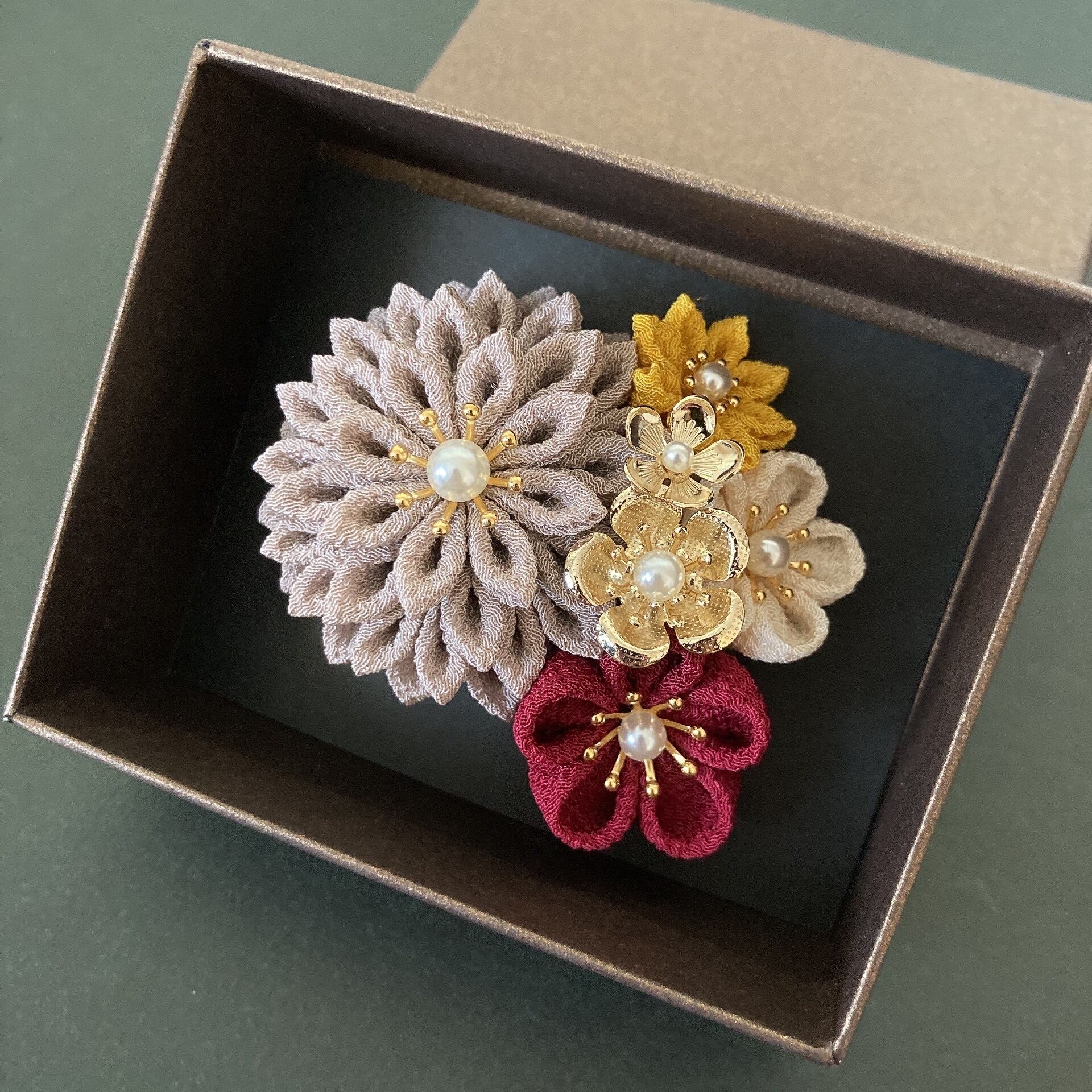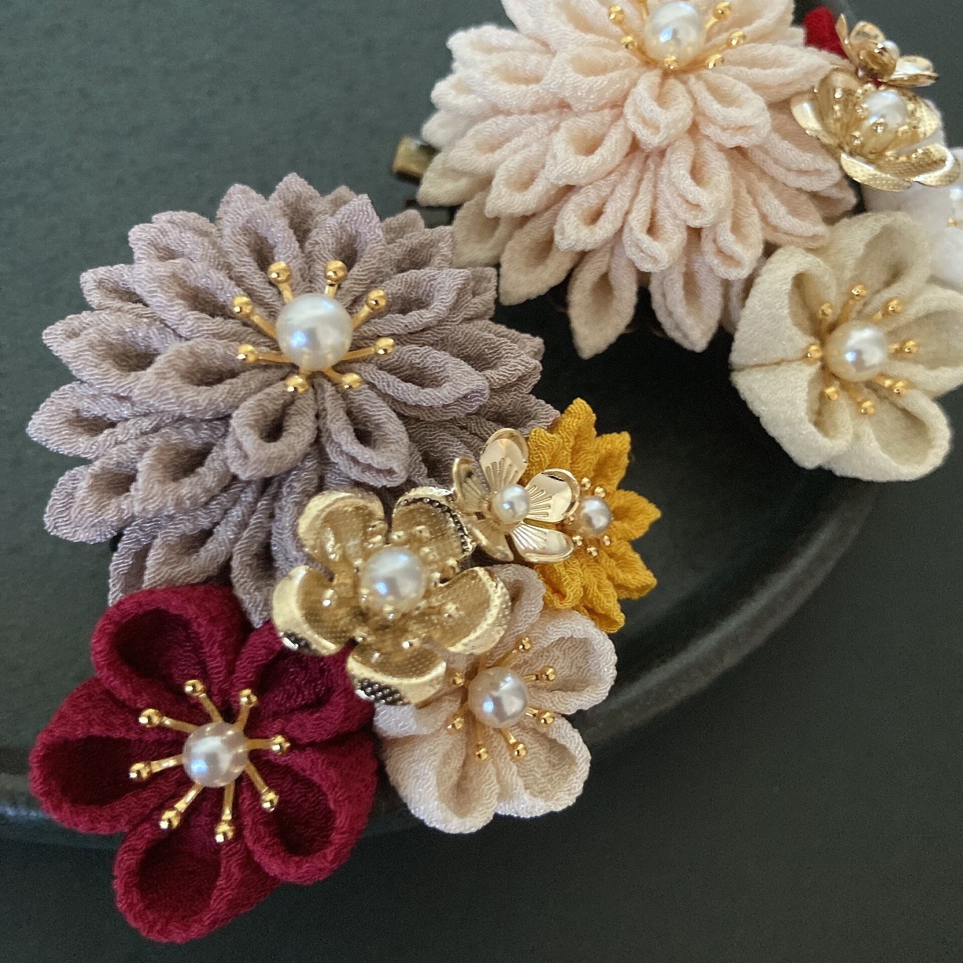 【ダリアと小花の髪飾り】 和装 フォーマル 特別な日 着物 浴衣 袴 振袖 卒業式 成人式 ベージュ グレー ナチュラル