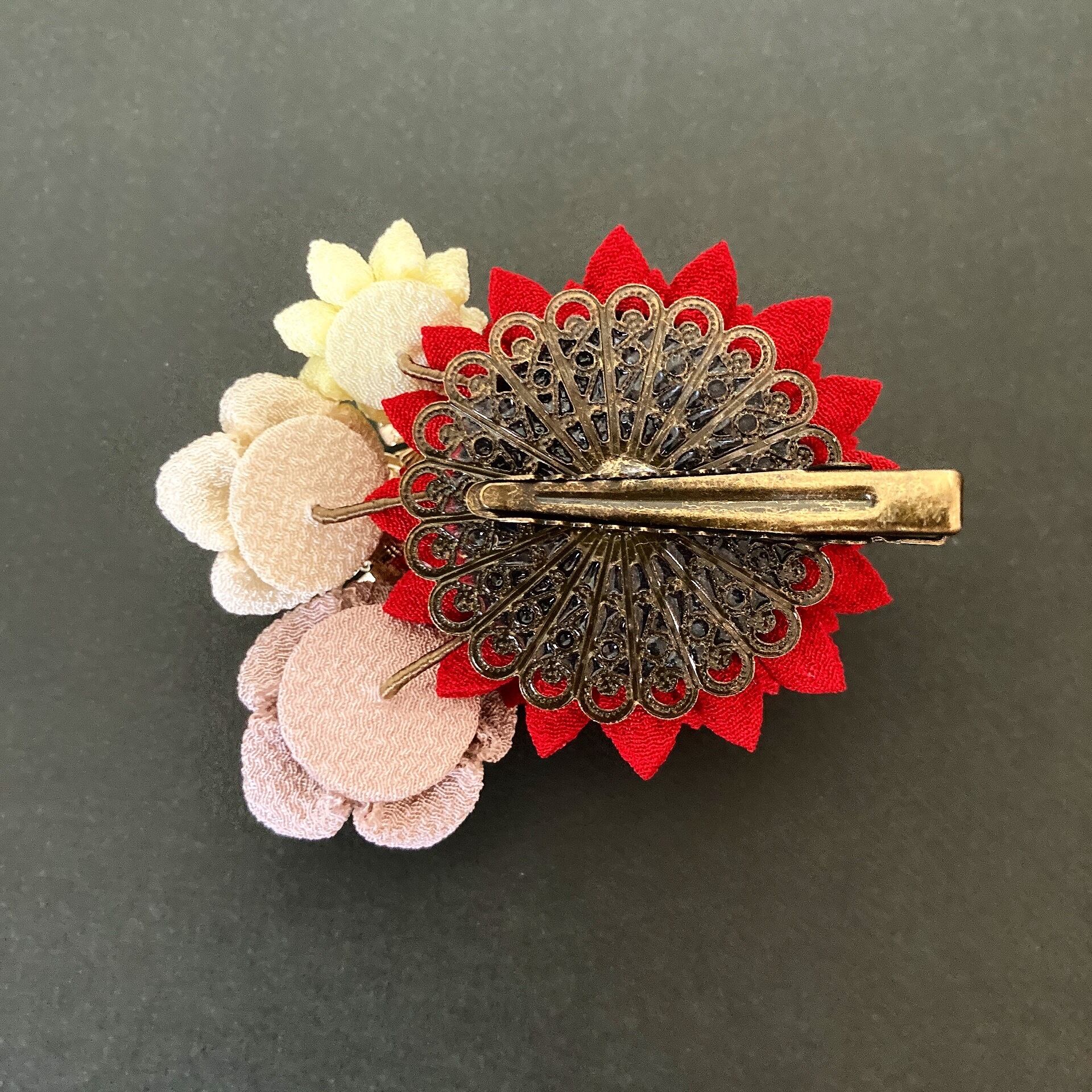 【ダリアと小花の髪飾り】 和装 フォーマル 特別な日 着物 浴衣 袴 振袖 卒業式 成人式 赤
