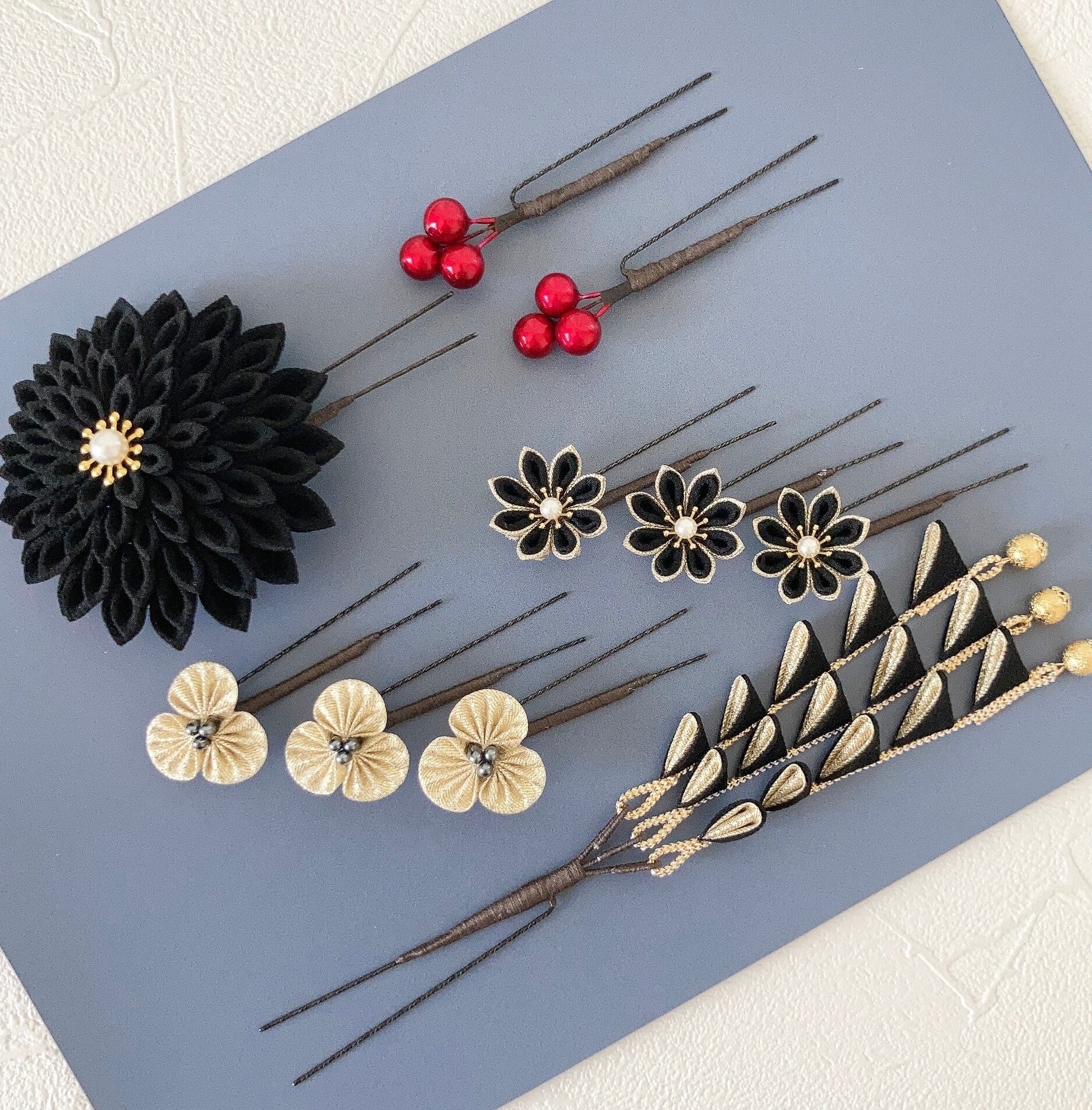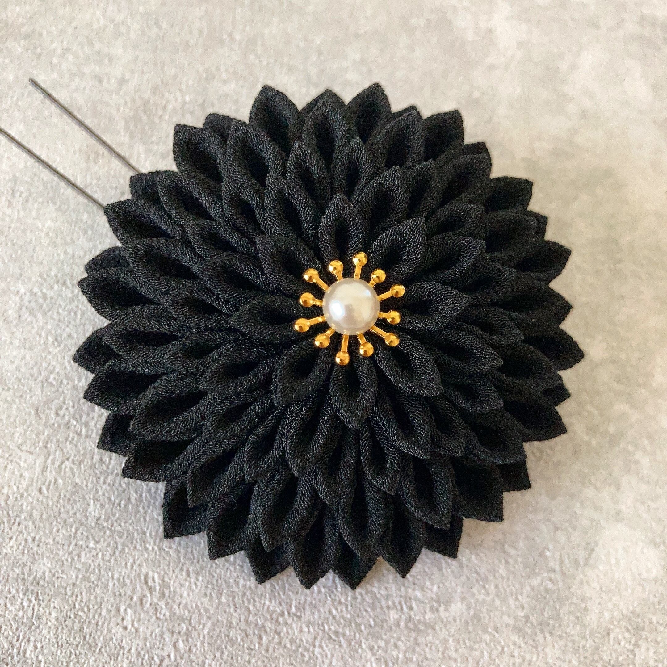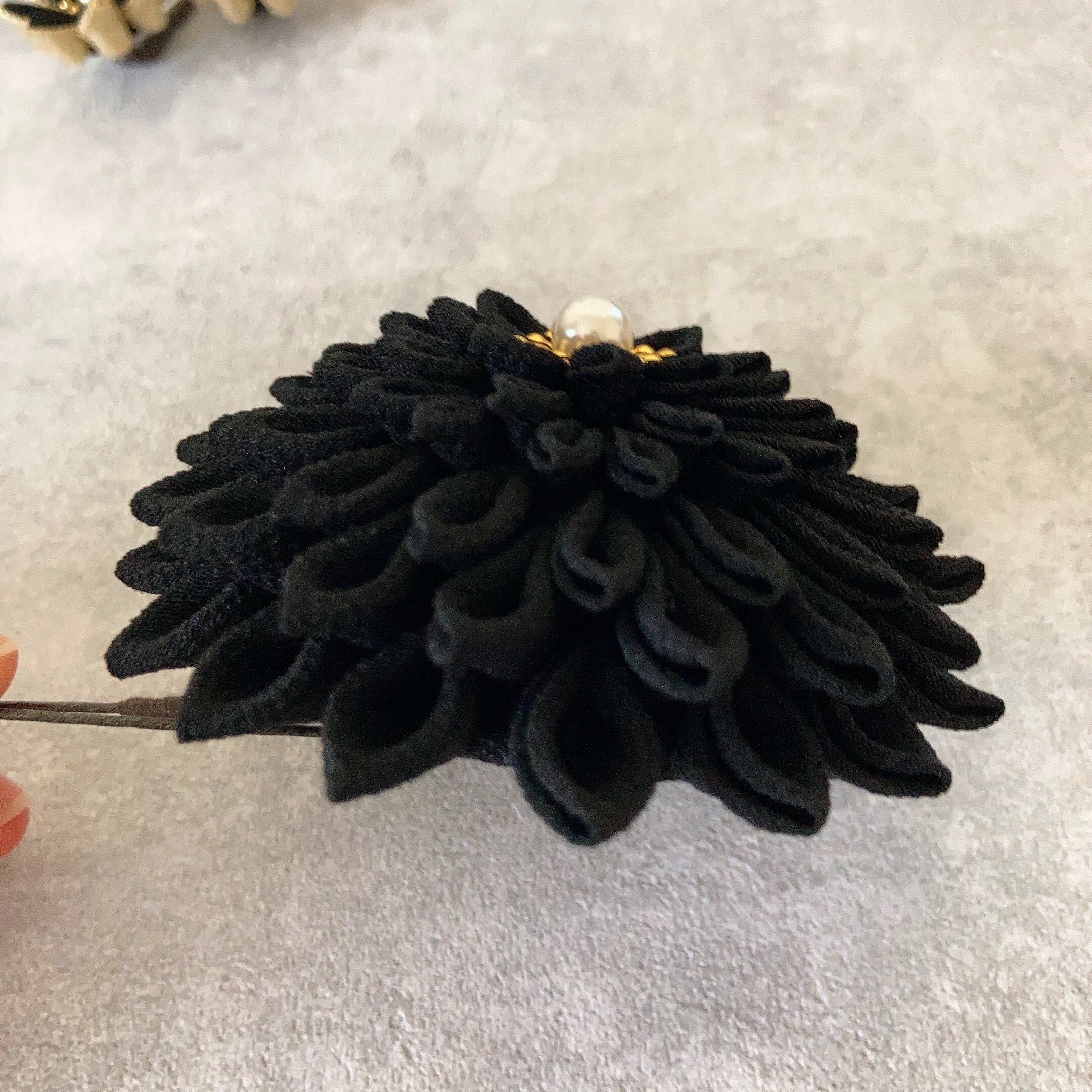 シックな髪飾り*黒♩【つまみ細工髪飾り】和装 着物 振袖 袴 色打掛け 黒 ゴールド 赤