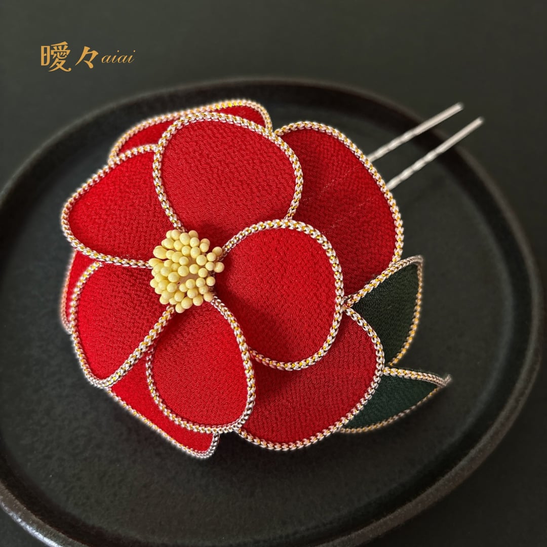 華やかな【椿】のお花を[かんざし]で仕上げました。