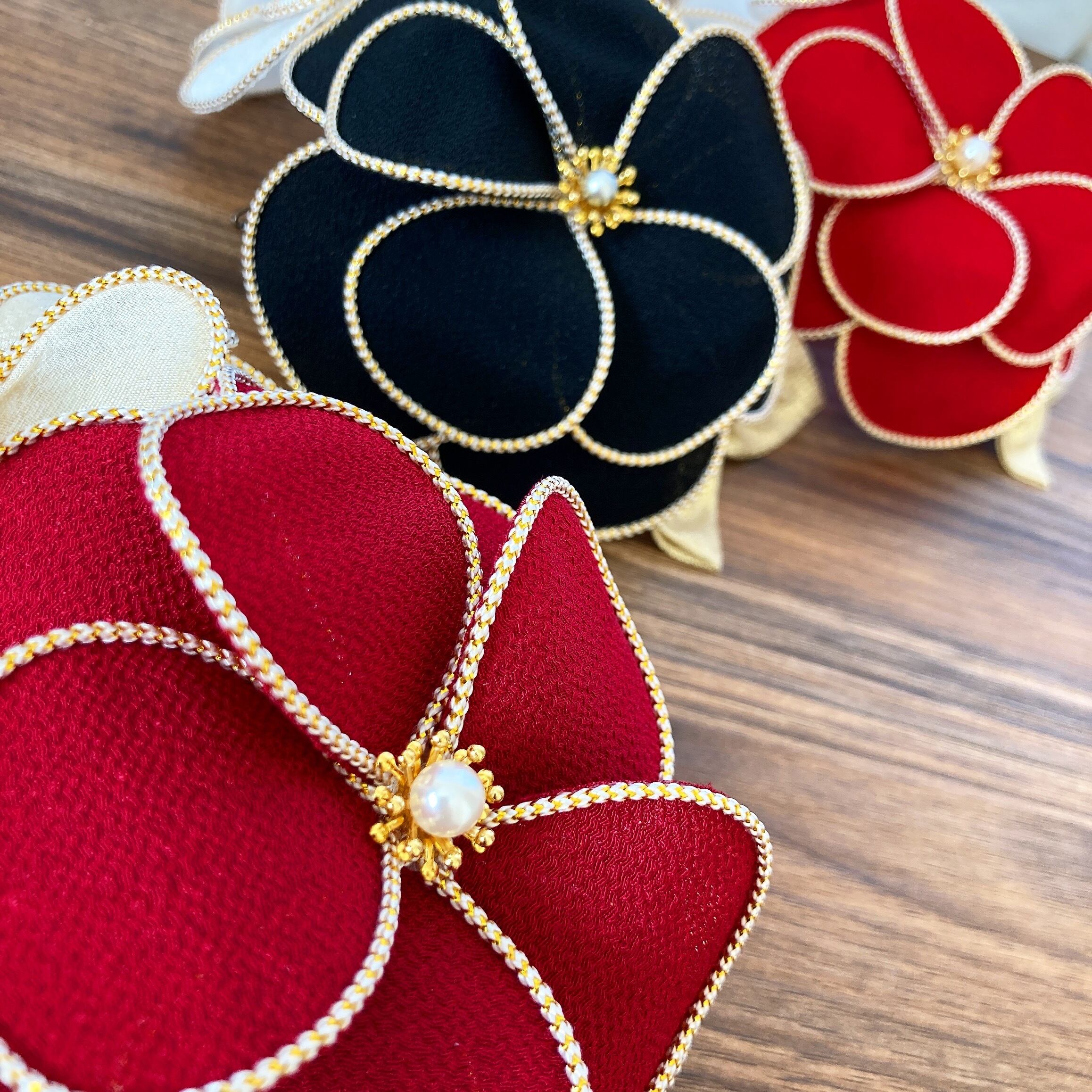 人気の椿のお花を、大きく印象的な髪飾りに仕上げました。