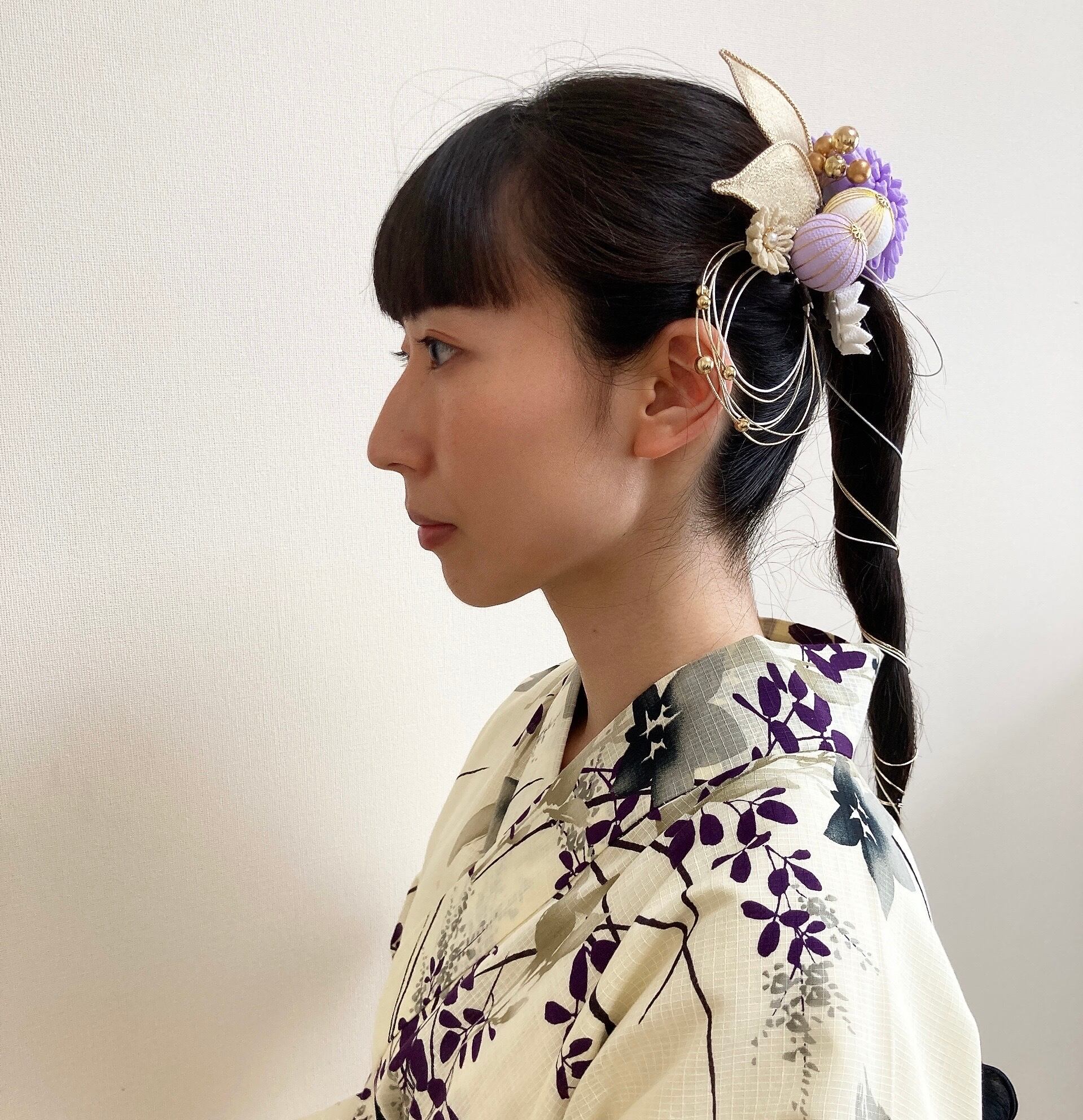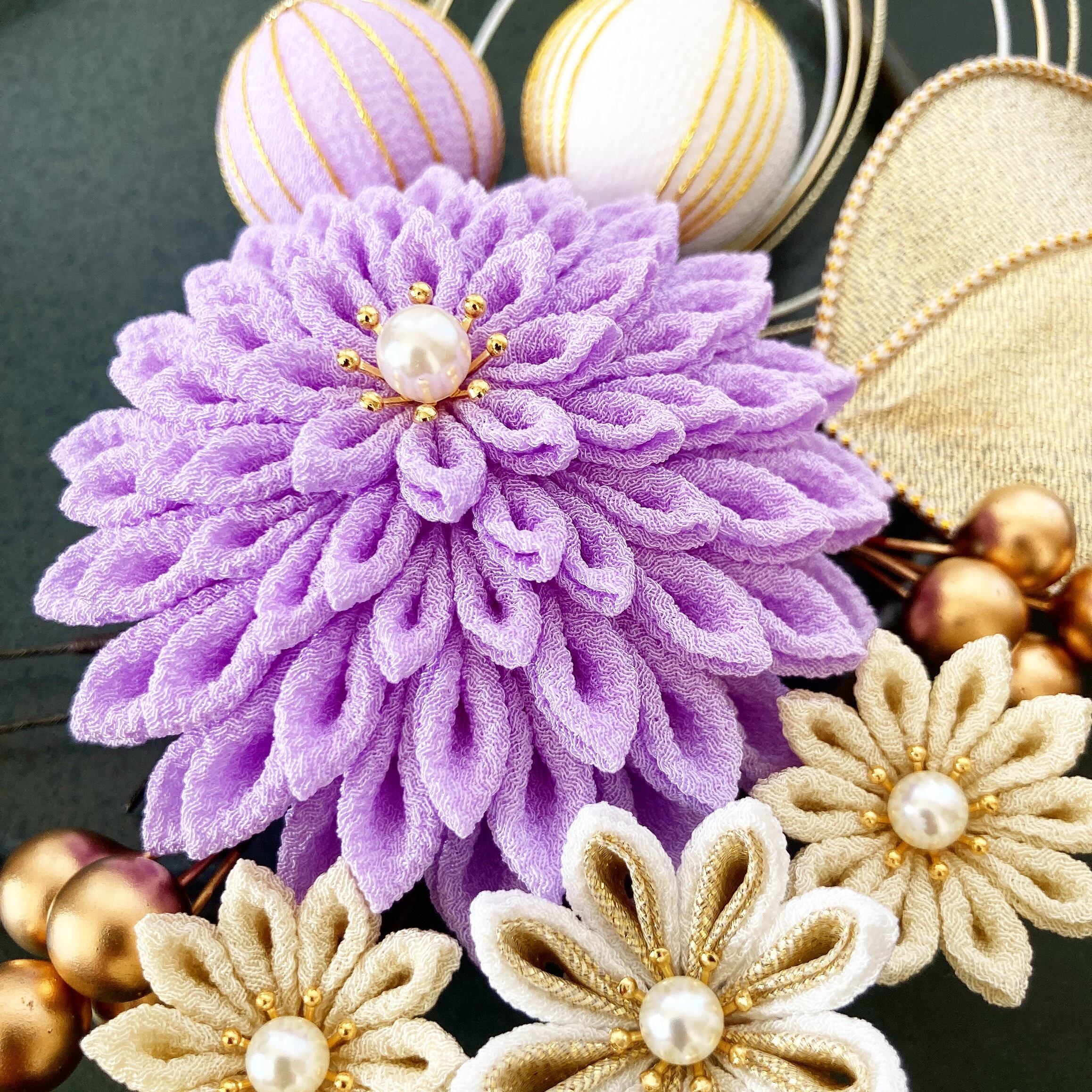 つまみ細工髪飾り 紫 ラベンダー 和装 着物 振袖 袴 色打掛 成人式 卒業式 結婚式 ゴールド