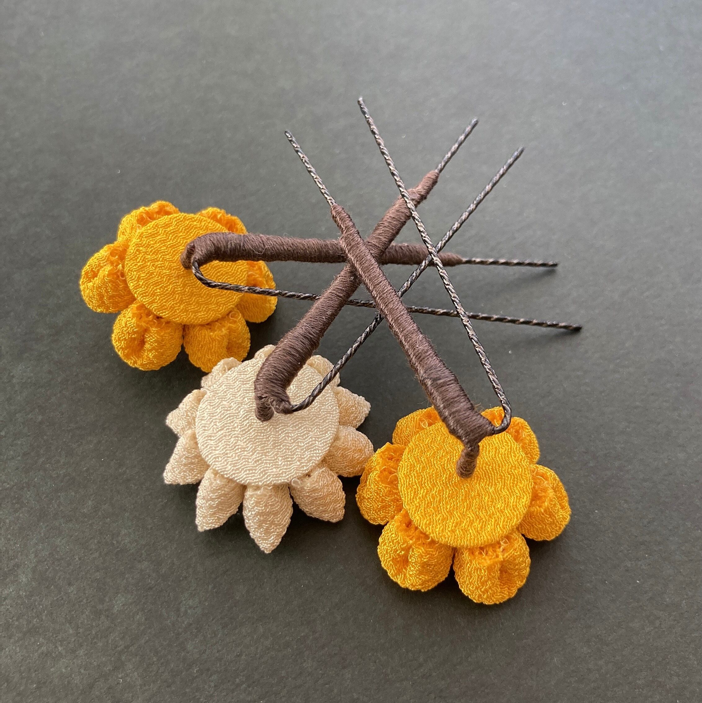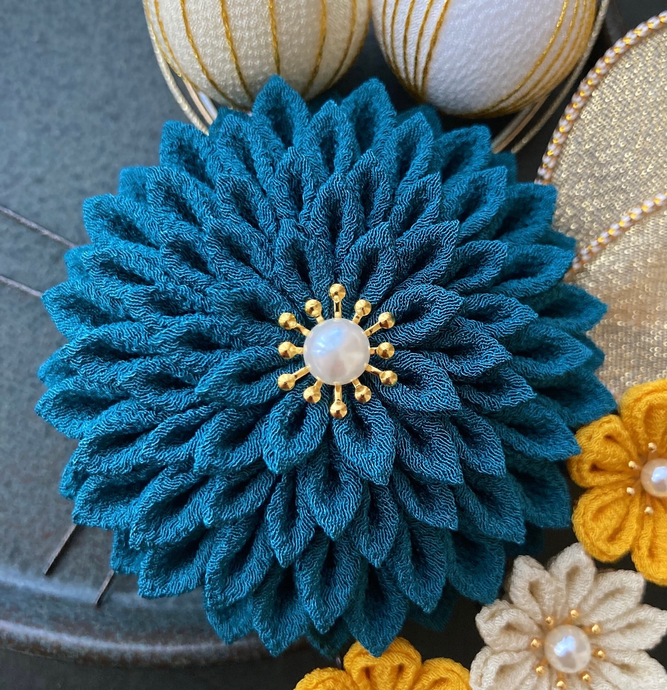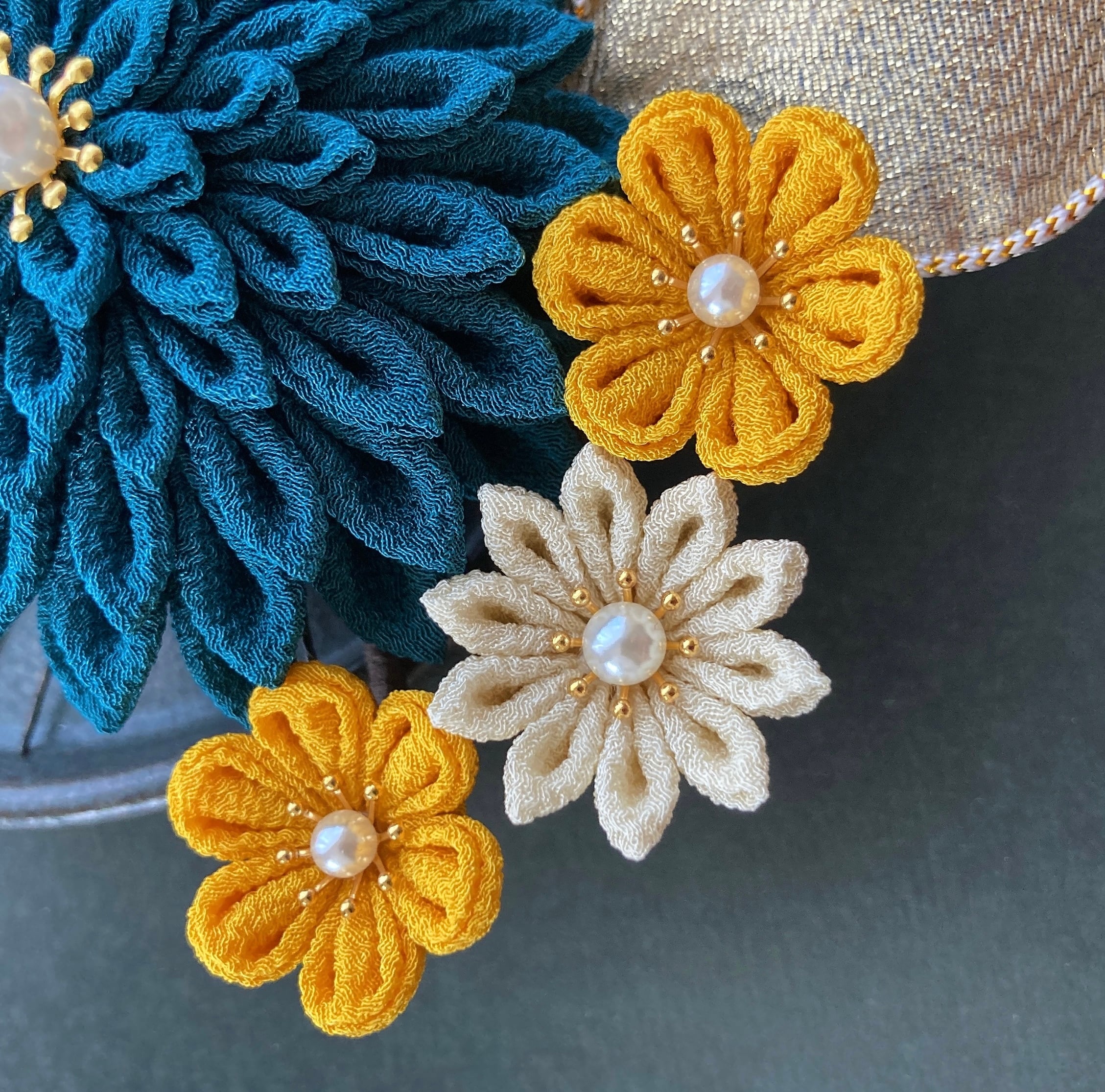 小さな布から一枚の花びらを作る、日本の伝統工芸【つまみ細工】の技法を用いて制作しています。