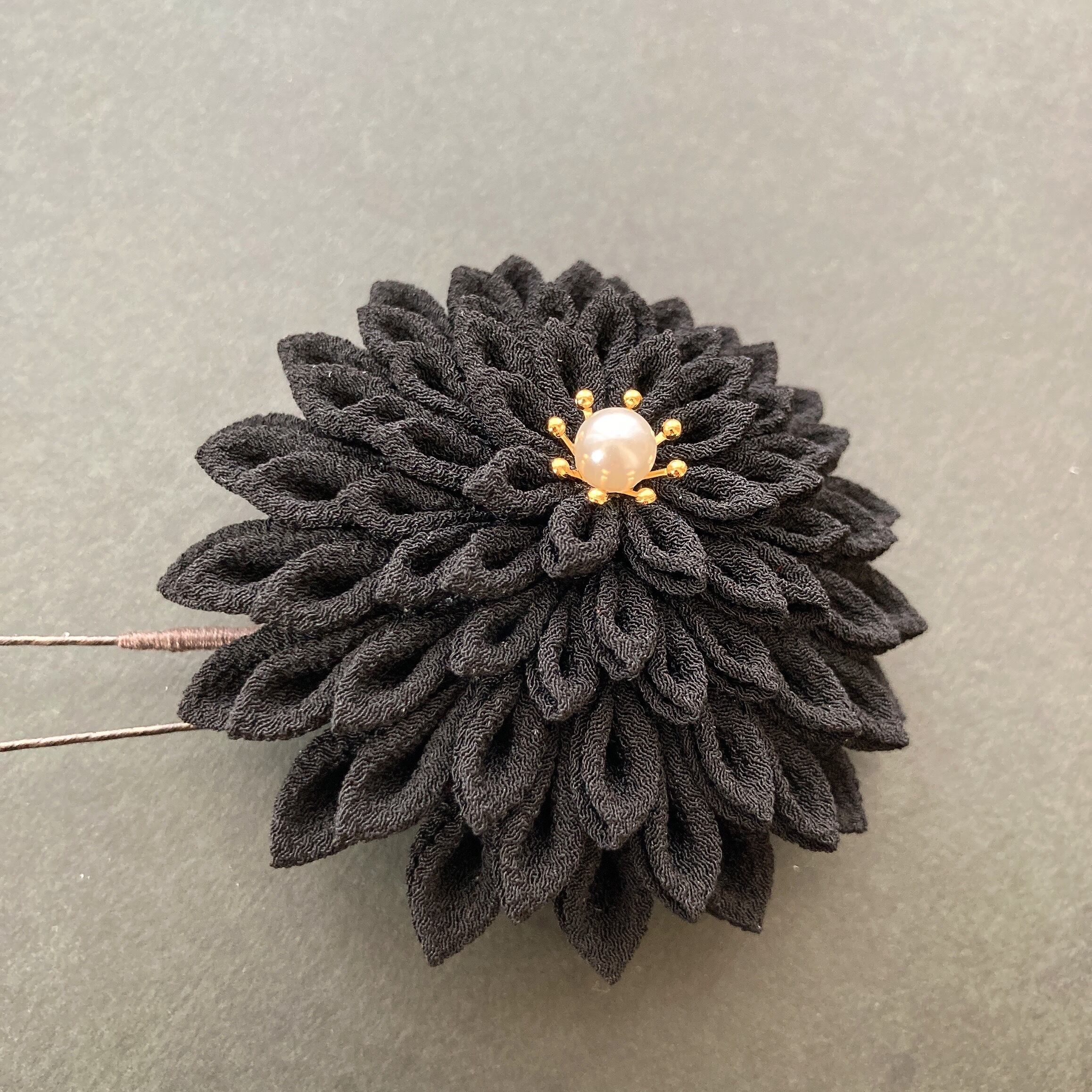 つまみ細工髪飾り 黒 和装 着物 振袖 袴 色打掛 成人式 卒業式 結婚式 グレー ゴールド