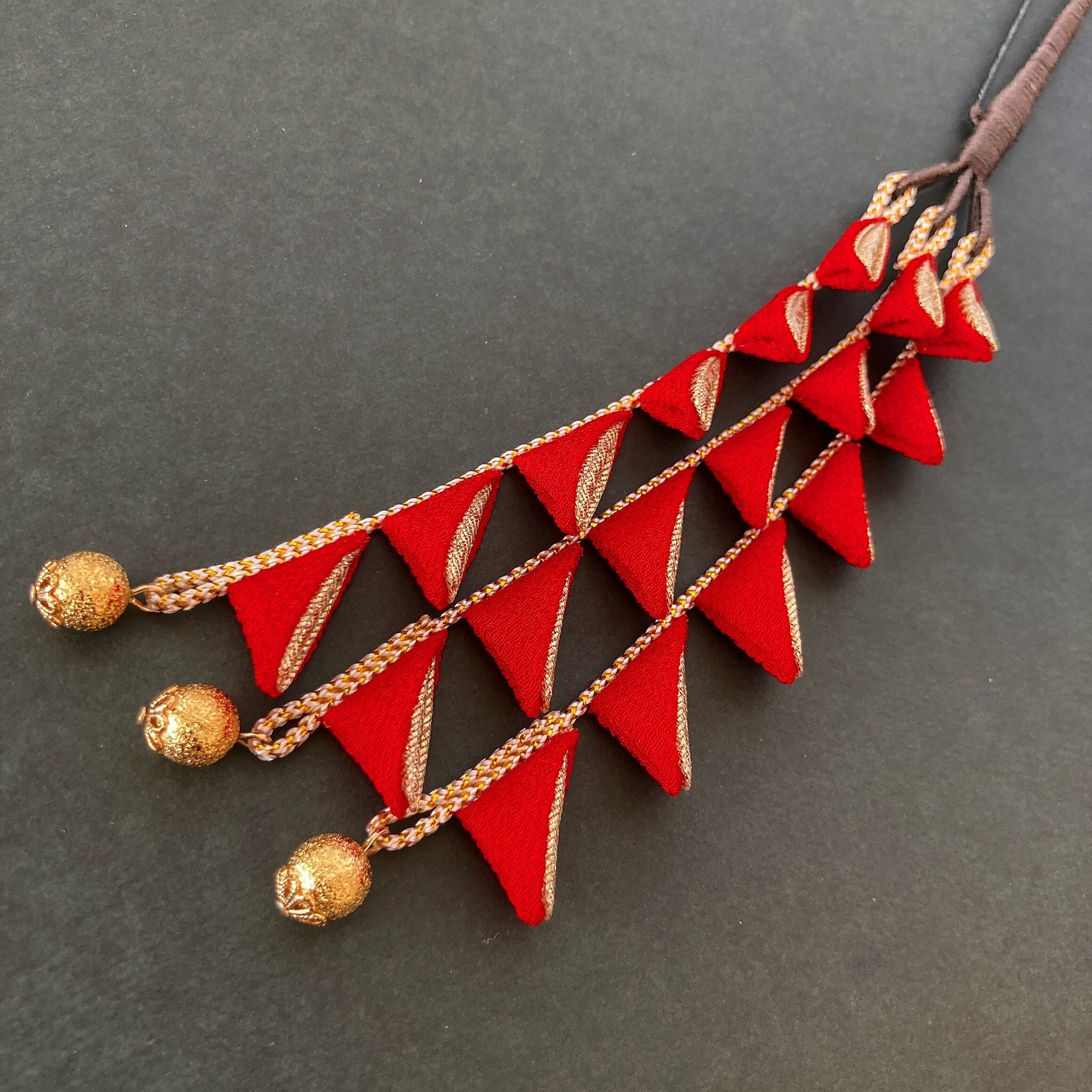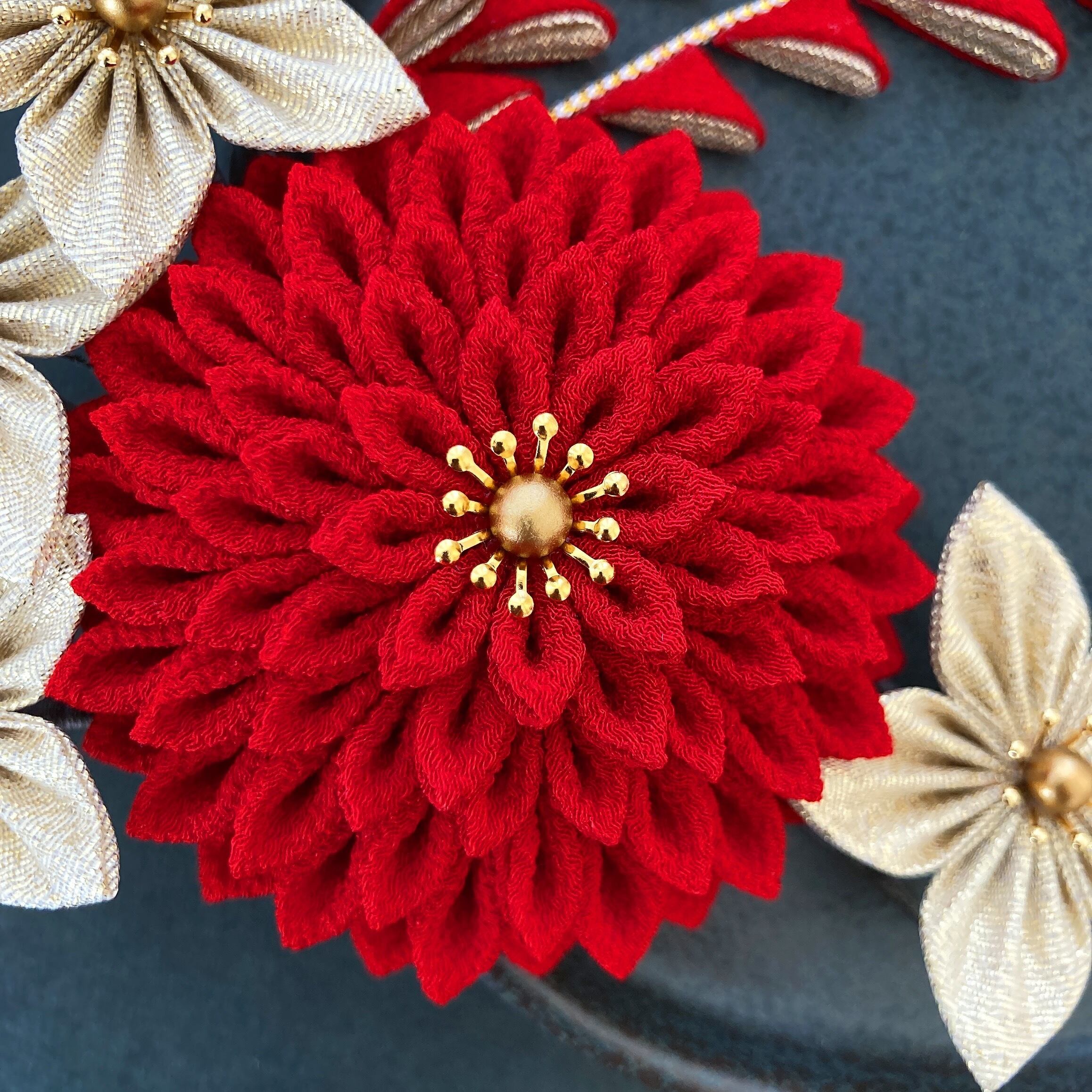 つまみ細工髪飾り 和装 着物 振袖 袴 色打掛 成人式 卒業式 結婚式 赤 ゴールド